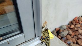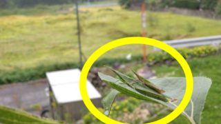 滝行?秋の雨にあえてあたるオンブバッタ。