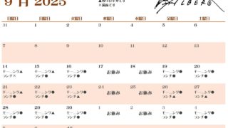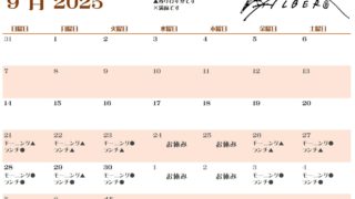 2025年9月21日㈰~10月25日㈯の営業日カレンダーです。