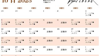 2025年10月14日㈫~11月8日㈯の営業日カレンダーの更新版です。