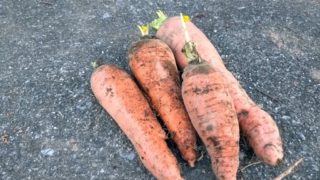 爆風の中で朝採り人参の収穫