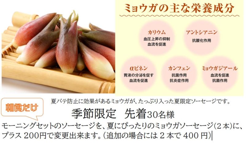 ミョウガ・ソーセージは、昨日注文したので、明日位に入荷予定です。