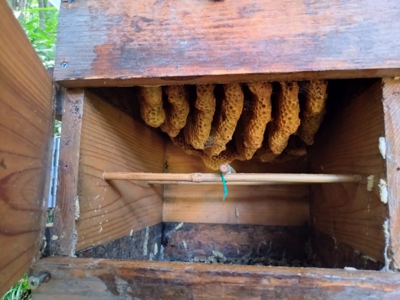 2年目は運よく2箱ともニホンミツバチが入って、順調に巣が大きくなってきたので、喜んでいただけにこれはショックです。