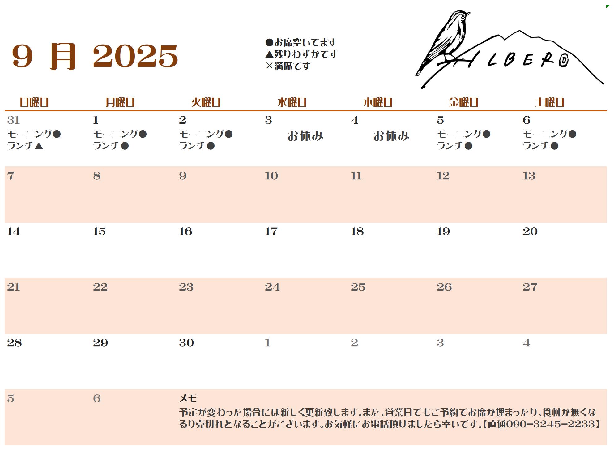 明朝8月9日(土)のモーニングはご予約で売切れ、明後日8月10日(日)のランチはご予約で満席となっております。