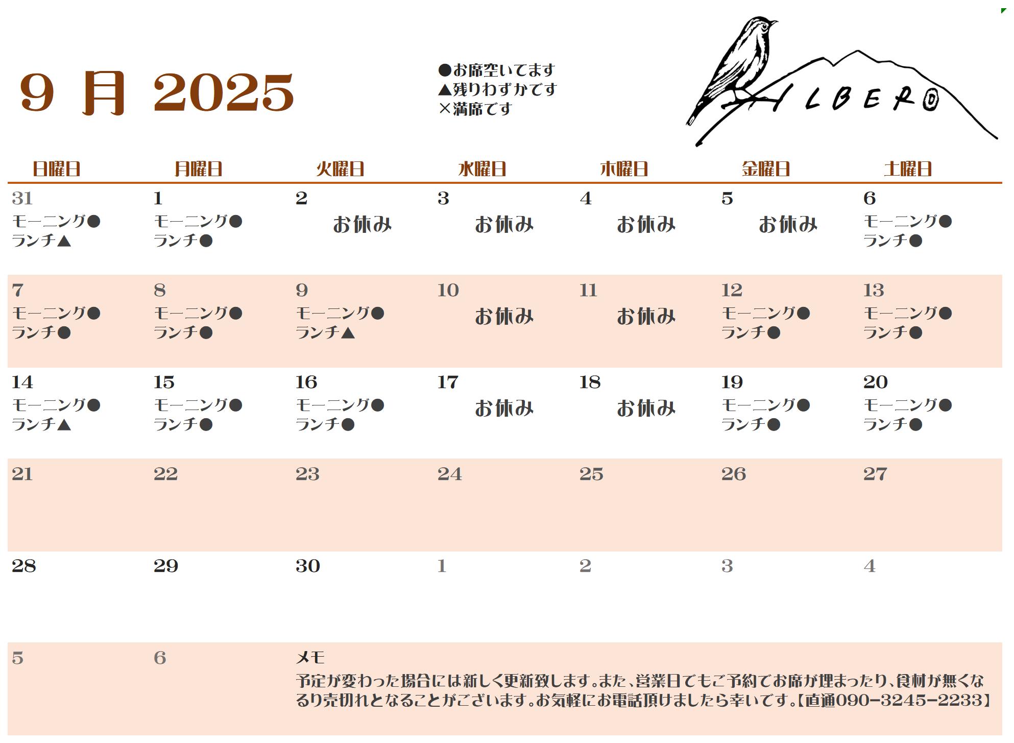 明日8月11日(月)は、モーニング・ランチとも満席となっております。