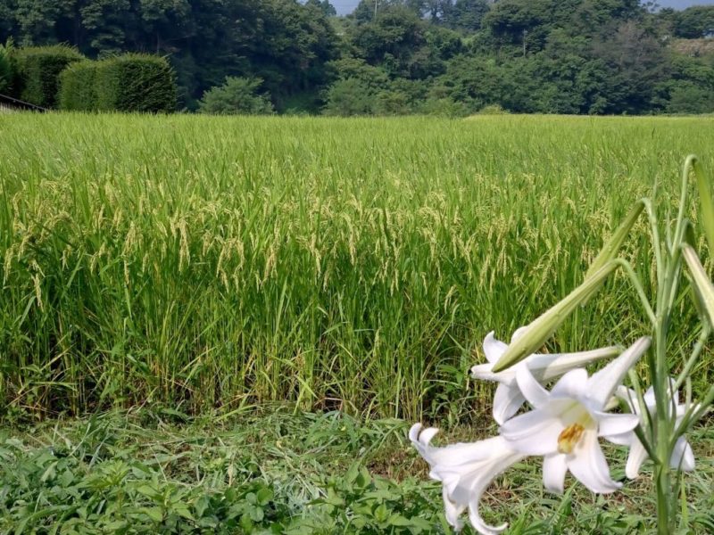 目の前の水田を管理されている方曰く、今年は稲の丈がすごく大きくて、例年ではないくらいよく育っているそうで、大きくなるとお米も沢山とれて、粒も大きく、美味しくなるんだとか。