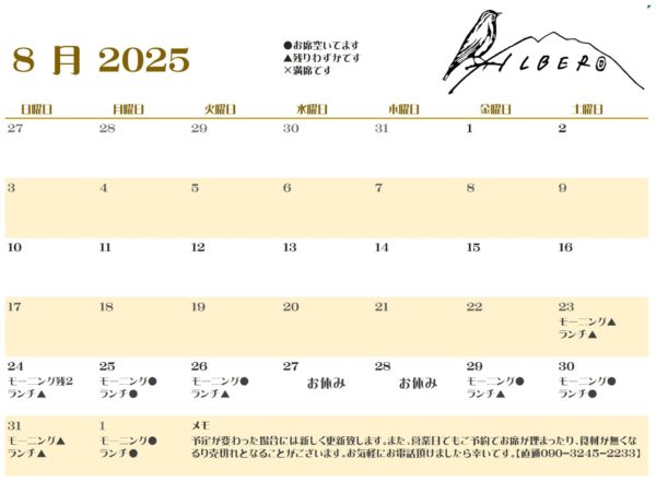 明朝8月24日(日)のモーニングは、おかげさまでご予約で満席となりました。