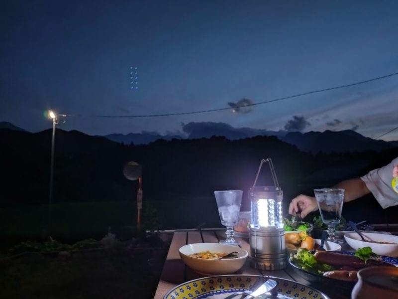 今夜は昼間草刈りして綺麗にしたお庭にて、ソーセージパーティでした。