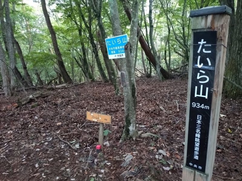 山ノ神の神社からすぐたいら山の山頂かと思ったら、そこからもソコソコ登って距離もあった。