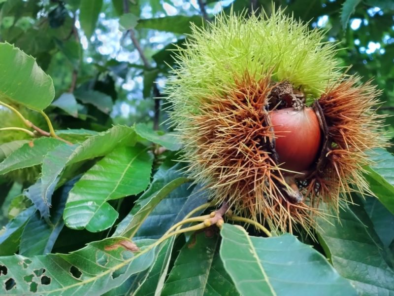 お庭には秋のてんとう虫に、お隣りの栗の木にはでっかい栗。