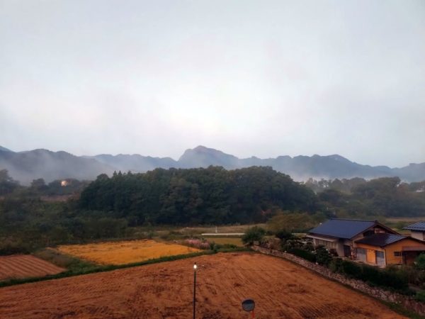 夕べはランニングしながら、ゴミ出しした帰りに、稲刈り途中の田んぼに若いシカが一頭いました。