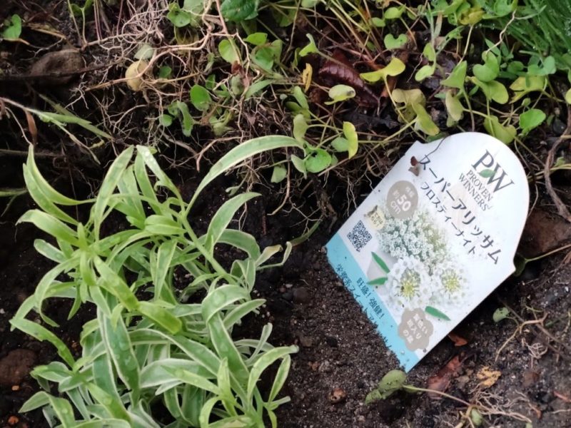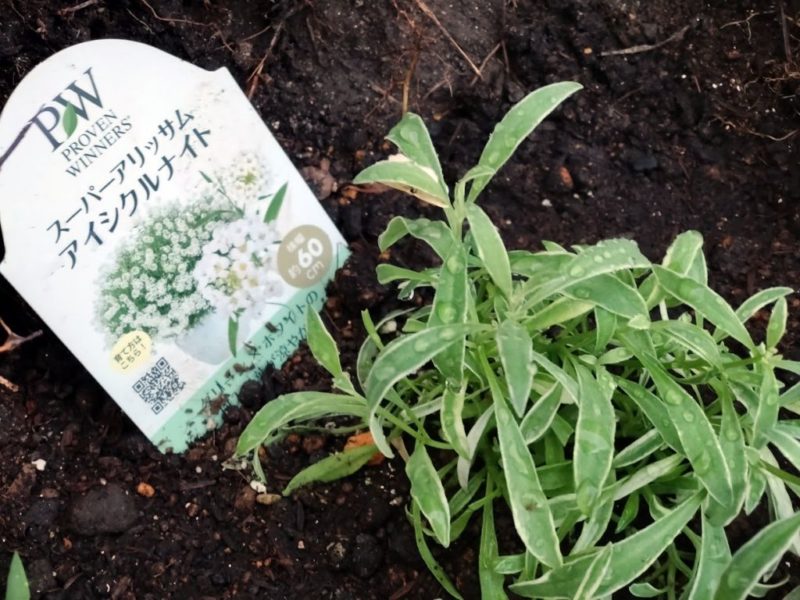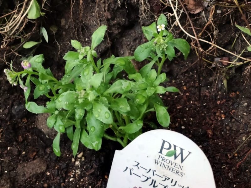 そこで、今年は春夏秋に花が咲くという、夏に強いスーパーアリッサムを3種類植えてみました。