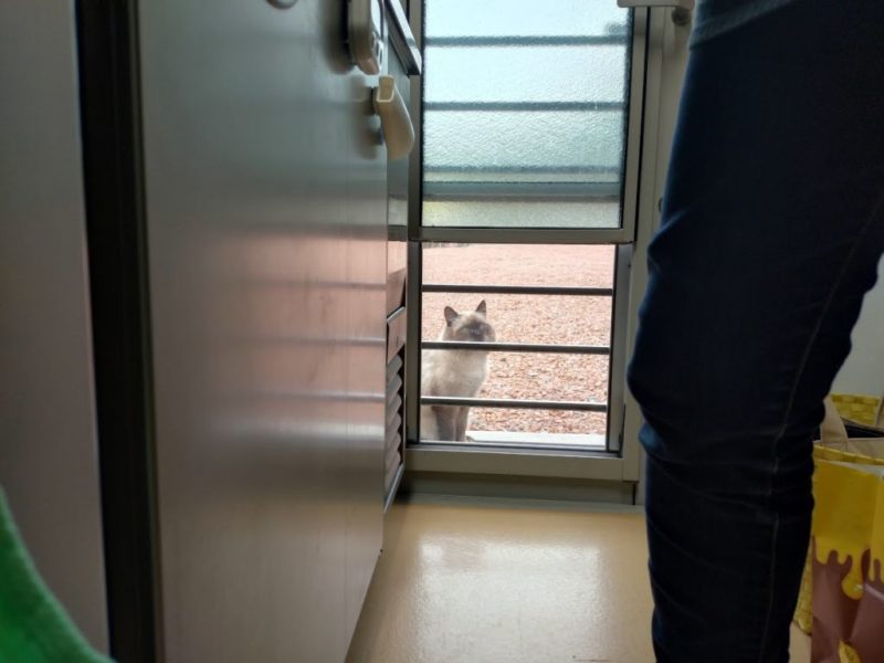 昨日はキッチンの網戸の向こうから覗いていて、なんだか可愛い。