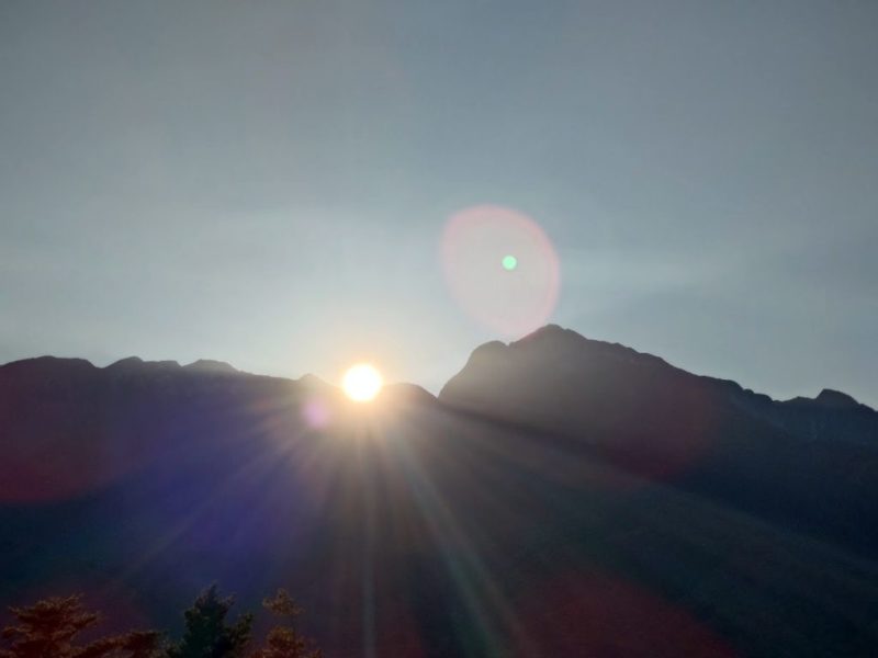 南アルプスに陽が沈み始めると、ちょっと寒くなってきました。