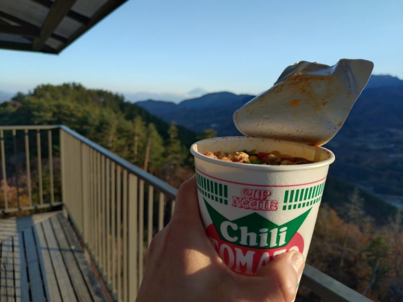 矢立石からなら日没前に行って帰って来れるのですが、ちょっと疲れたんで、中山展望台迄登って、富士山・甲斐駒・八ヶ岳・金峰山を眺めながら、昼飯用のカップ麺を頂きました。