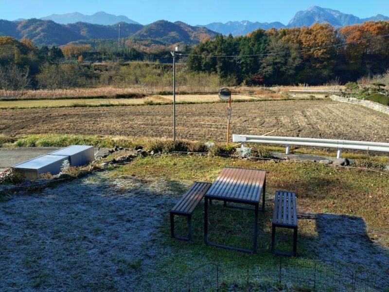 早朝は霜で真っ白でしたが、おひさまが当たり始めると、みるみる霜は消えて、うっすら湯気が出ています。