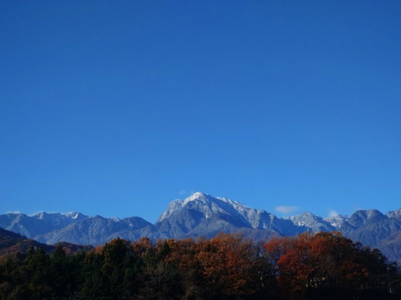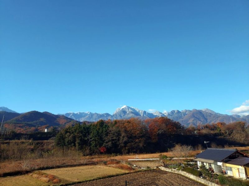 昨日の雨は山では雪で、今朝は真っ白になった甲斐駒ヶ岳が見られました。