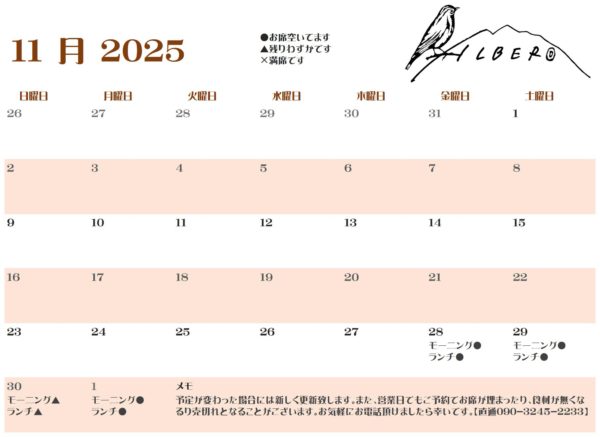 明日11月30日 日曜日のランチは、残り2席で満席となります。(11/29 17時現在)