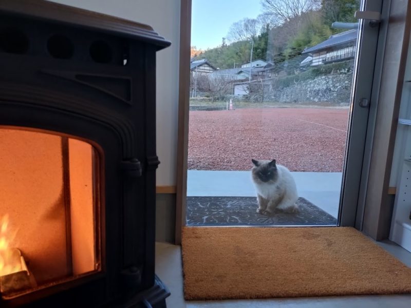 お店のストーブをつけて、キッチンで朝カレーをあっためていたら、ポンちゃんがやってきました。
