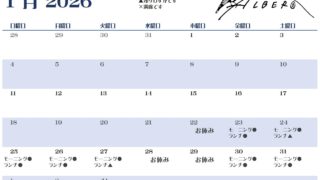 2026年1月22日㈭~2月28日㈯の営業日カレンダーです。