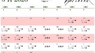 2026年3月13日㈮~4月18日㈯営業日カレンダーです。