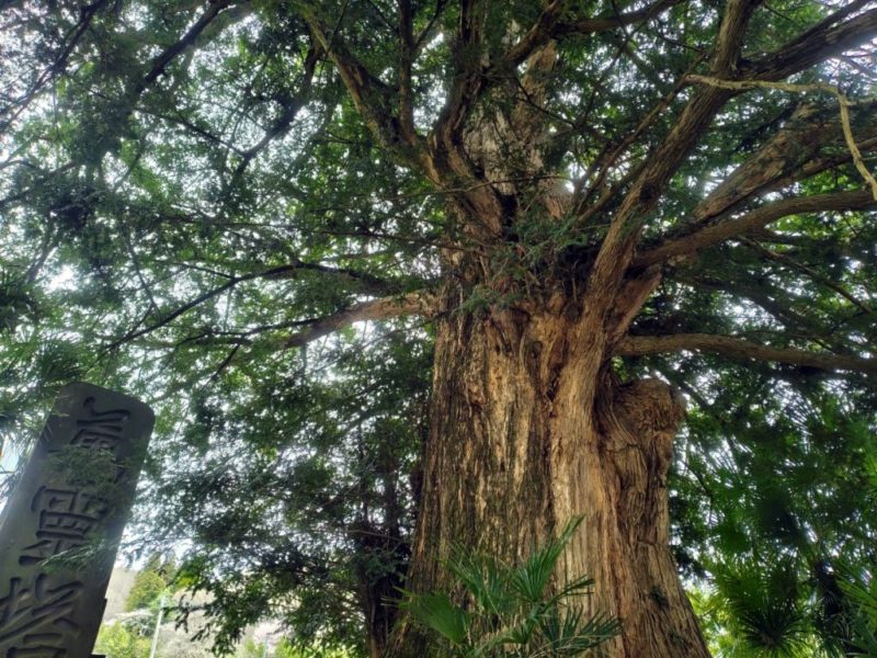 開山雲鷹玄俊大和尚が植えたとされる樹齢600年以上の榧の巨木(県指定の天然記念物)