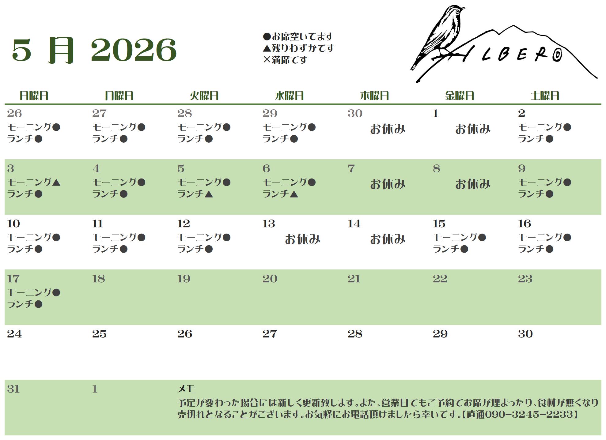 通常は定休日の4月29日と5月6日の水曜日は営業日となります。