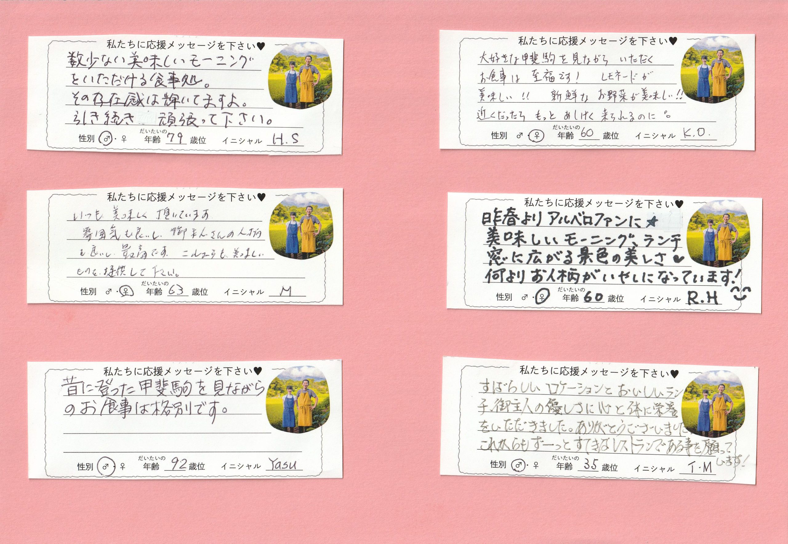 春になってご利用が増えて来たので、またまたお客様からの応援メッセージをいただきました。