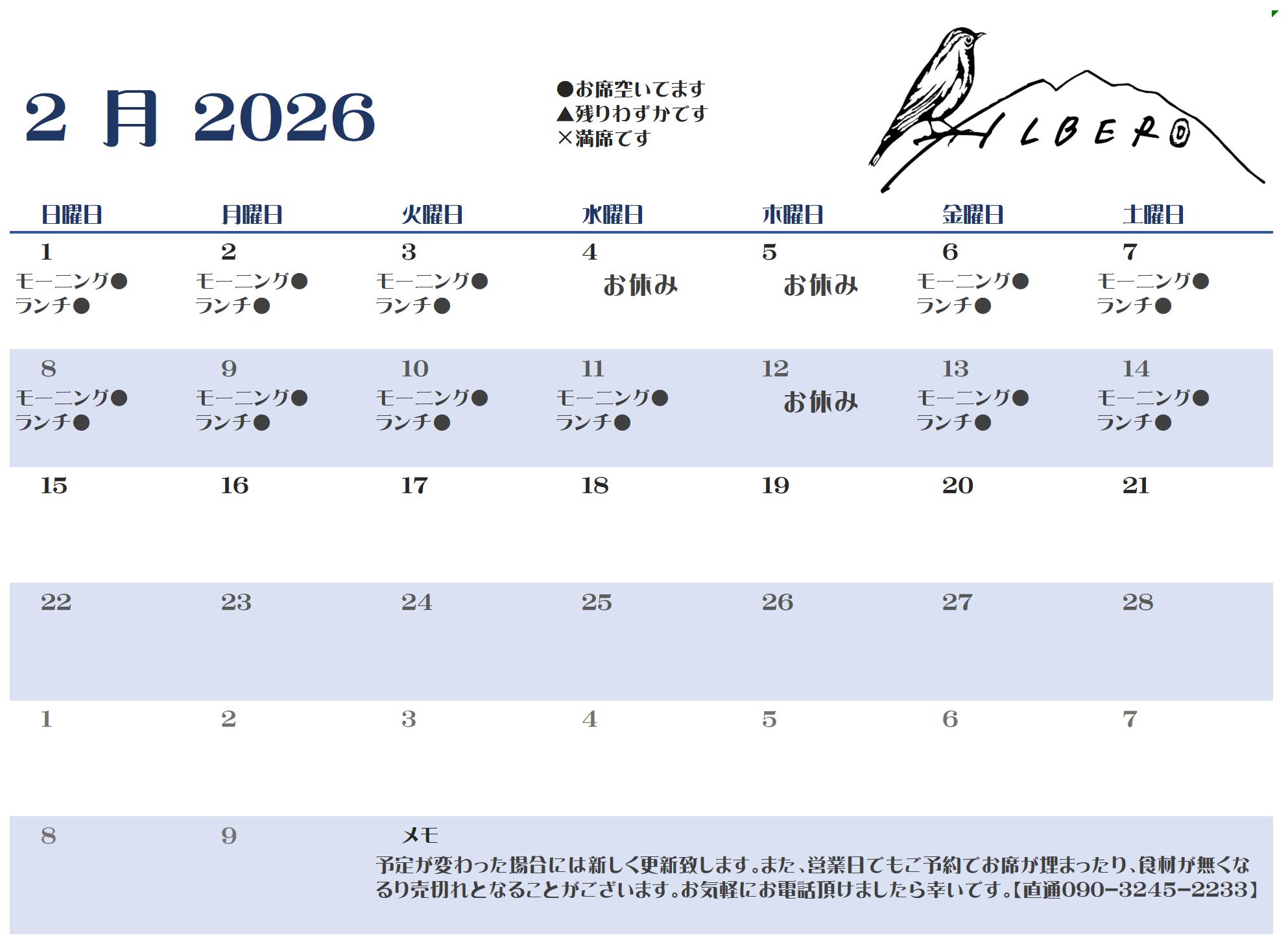 2月11日㈬は定休日ですが、祝日なのでがんばって営業致します。