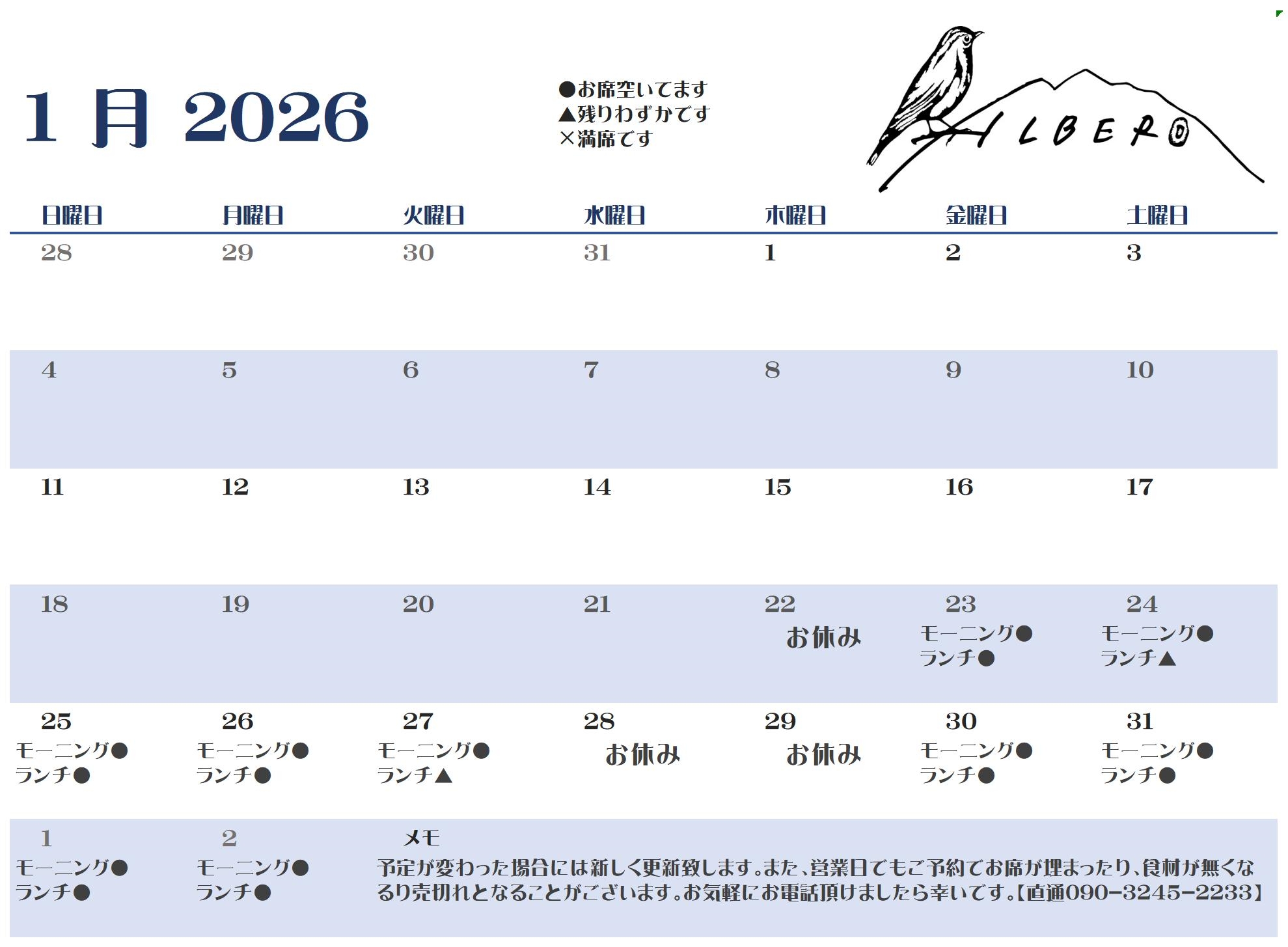 定休日でも可能な限りはご予約のお電話には出ますので、遠慮なくお電話下さい。