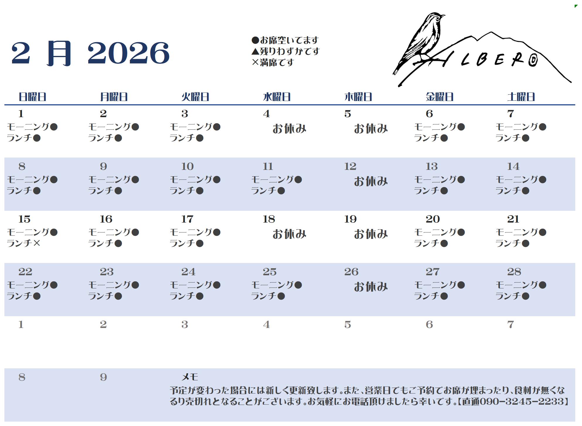 2月11日㈬は本来は定休日ですが、建国記念日の祝日なので営業致します。
