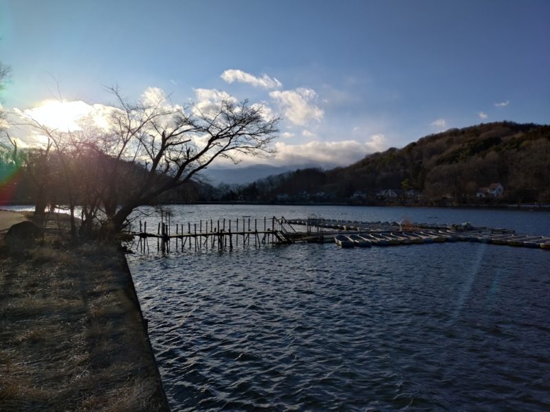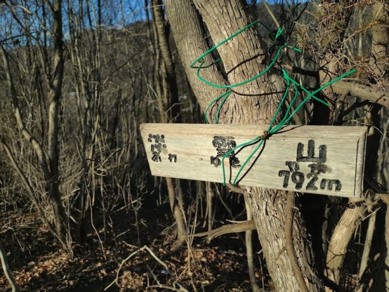 歩き始めは大寒波の影響ありつつも甲府は気温が5度もあったので、防風防寒防水上着をザックに仕舞って、薄手のウインドブレーカーを羽織り、ニット帽とネックウォーマーも外して、白山迄は汗をかきかき登りましたが、そこから千代田湖に降りると、急に気温も下がり風も当たり始めたので、帯那集落の交番のところで上着とニット帽を出して羽織りました。