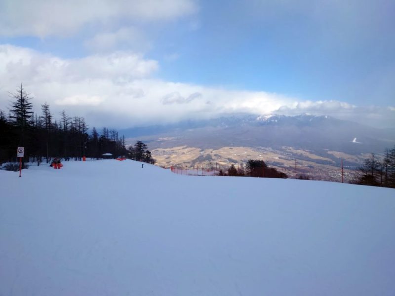 ゴンドラの山頂駅から。 ゲレンデには雪がたっぷり。