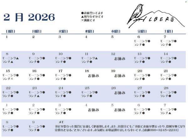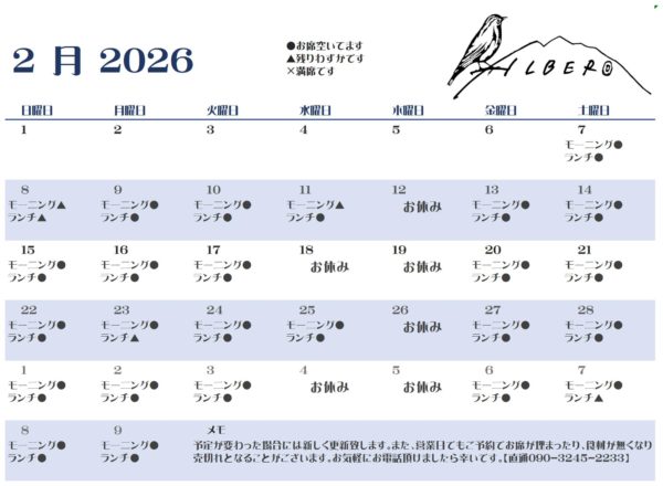 そういえば、来週2月11日(水)は建国記念日の祝日なので、白州アルベロは臨時営業です。