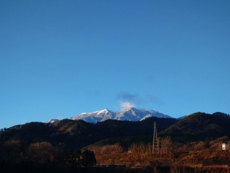 昨日の雨は山では雪だったようで、標高1660mの日向山も少し白くなっていました。