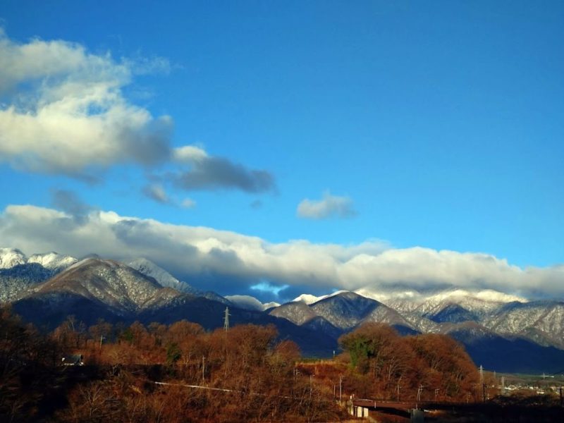2000m峰の雨乞岳や鞍掛山、烏帽子岳等もかなり白くなり、甲斐駒ヶ岳や鳳凰三山は真っ白ですごく綺麗。