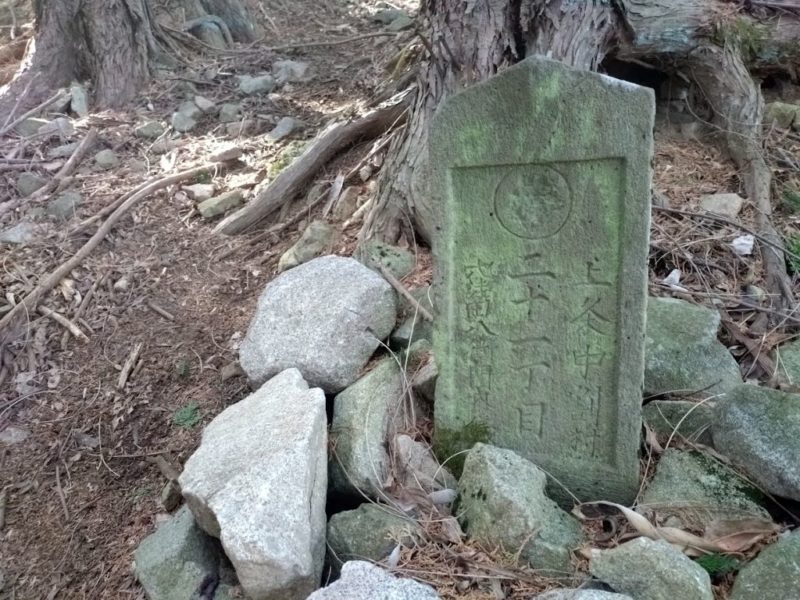 途中は新しい林道を登る場所もありますので、たぶん旧道が別にあって、そっちに丁目石のほとんどはあるのではなかろうかと思います。