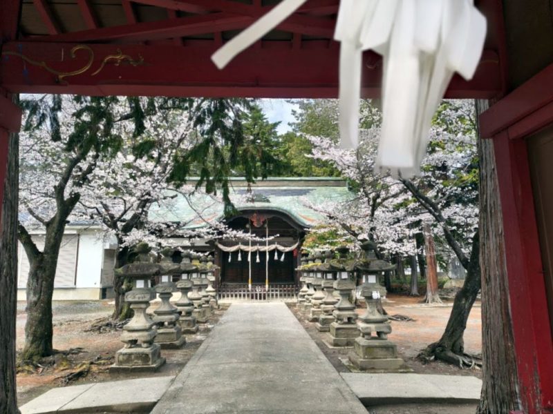 千塚八幡神社の十二支の石灯籠の桜も満開でした。