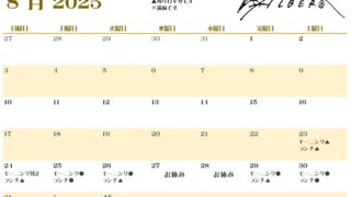 2025年8月23日(土)~9月27日(土)の営業日カレンダーです。